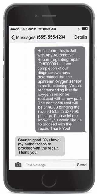 “… When the customer provides an electronic authorization, the automotive repair dealer shall record the authorization by documenting around the estimate the date, time, name of the person authorizing the repairs, and the phone number or electronic mail address contacted, if any, or produce this information on documents relating to the authorization that supplement the estimate.”