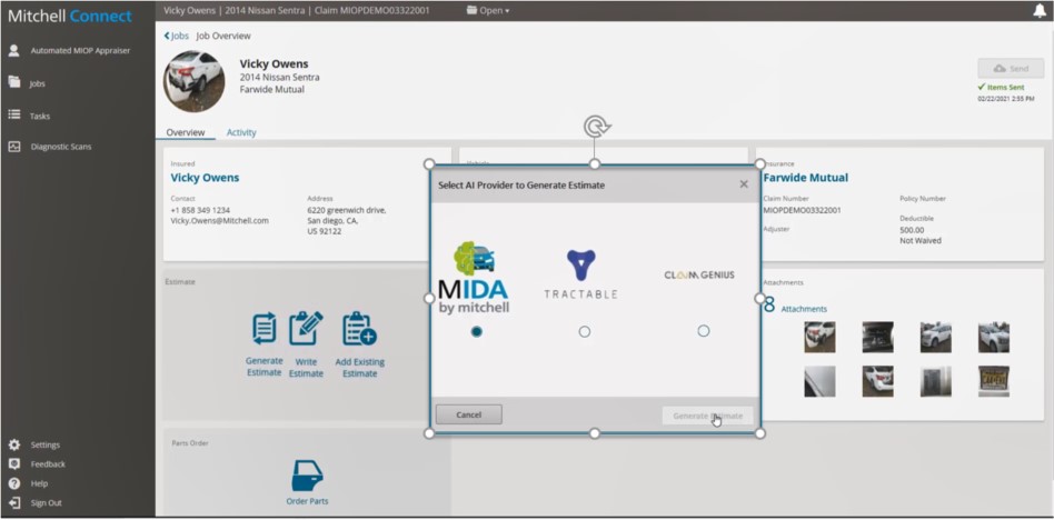 Mitchell on Wednesday announced the photo estimating artificial intelligence software Claim Genius could be available to insurers through Mitchell Intelligent Open Platform.