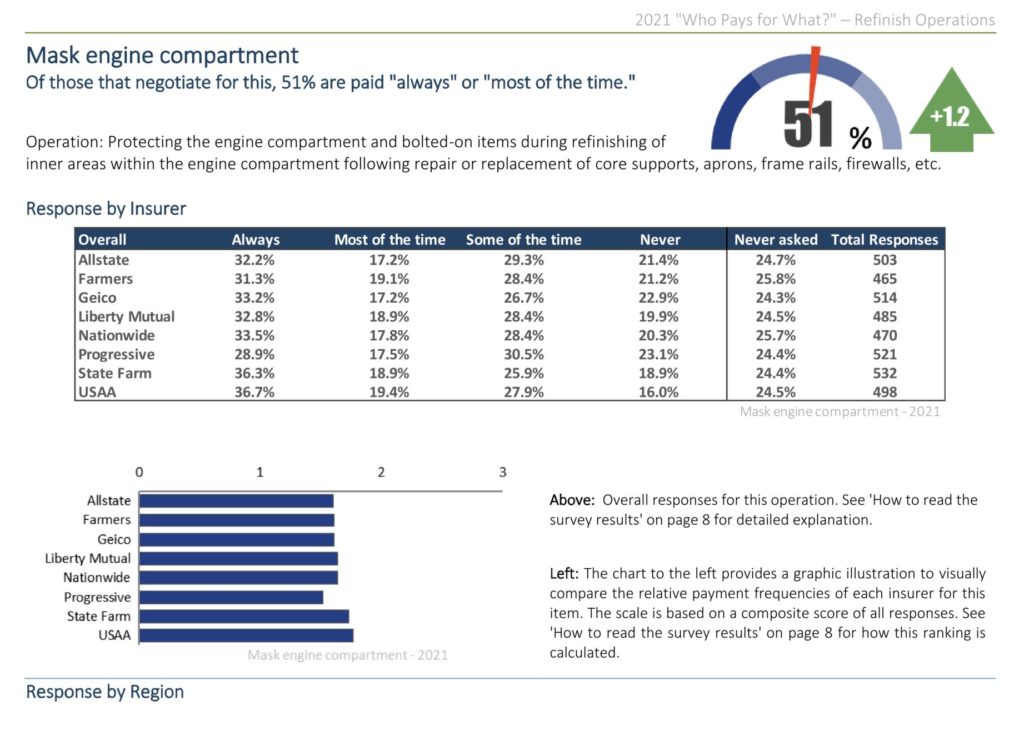More than half of body shops polled in the latest “Who Will pay for What?” survey said leading national insurers “always” or “the majority of the time” reimburse the cost of masking the engine compartment.
